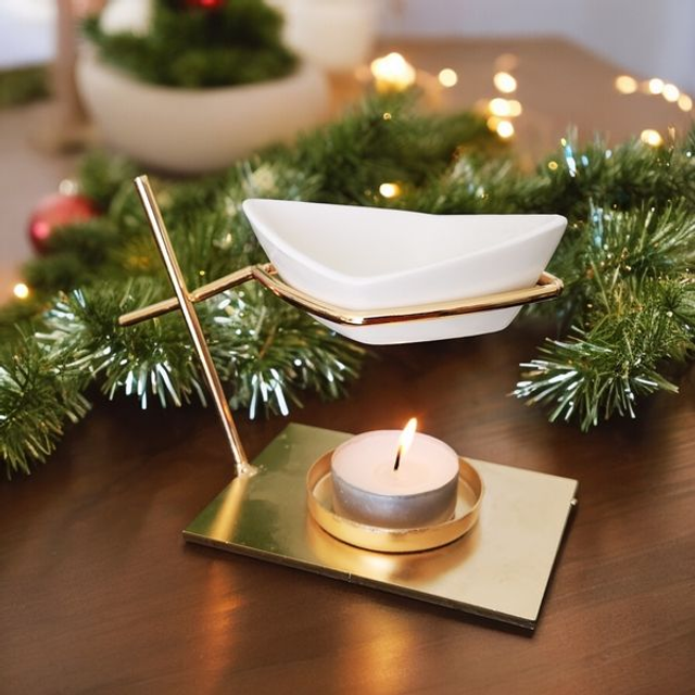 Son utilisation est extrêmement simple, mettez vos cires, fondants parfumés, senteurs, huiles essentielles ou autres solutions parfumées dans le bateau en céramique. À l’aide de la chaleur d’une bougie chauffe-plat (bougie non fournie), la senteur échappe au bout de quelques instants.